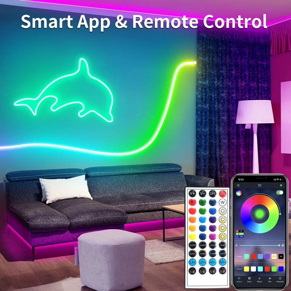 Tira de Luces LED RGB con Control Remoto y Aplicación, Color Ajustable, Sincronización con Música, para Decoración de Habitaciones de Juegos y Dormitorios
