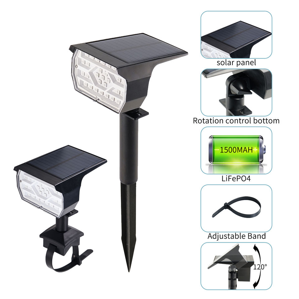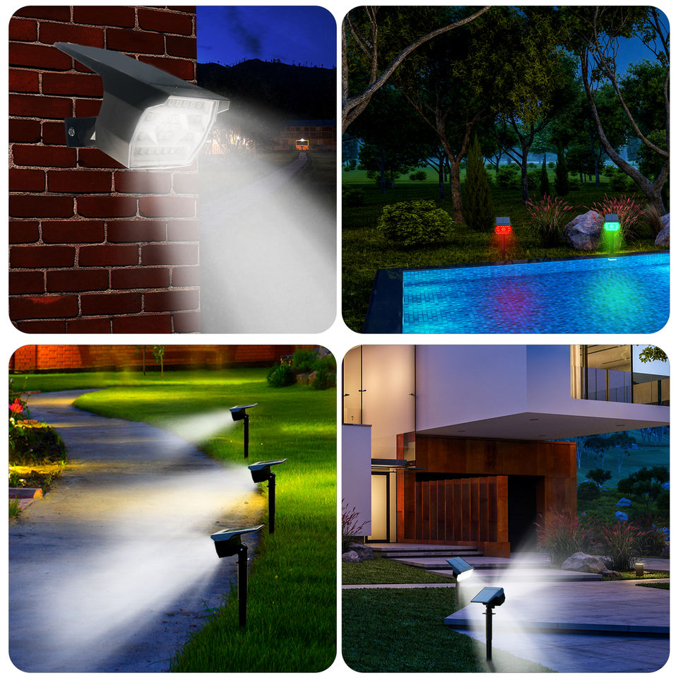 Luces solares RGB para piscina, impermeables para exteriores con 6 modos, valla de pared de plástico, montaje en tierra, focos de jardín con energía solar