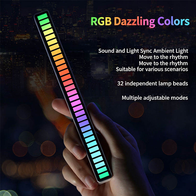Lámpara de escritorio RGB con control por voz, sincronización rítmica, ambiente musical colorido y luz LED creativa con sensor
