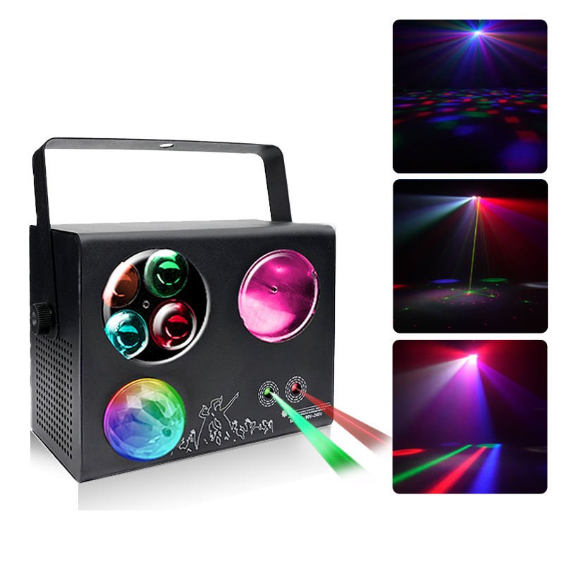 Proyector de haz de control de sonido LED RGBW, láser KTV interior cuatro en uno para bodas y banquetes, luz de escenario de burbujas, pequeña sacudida