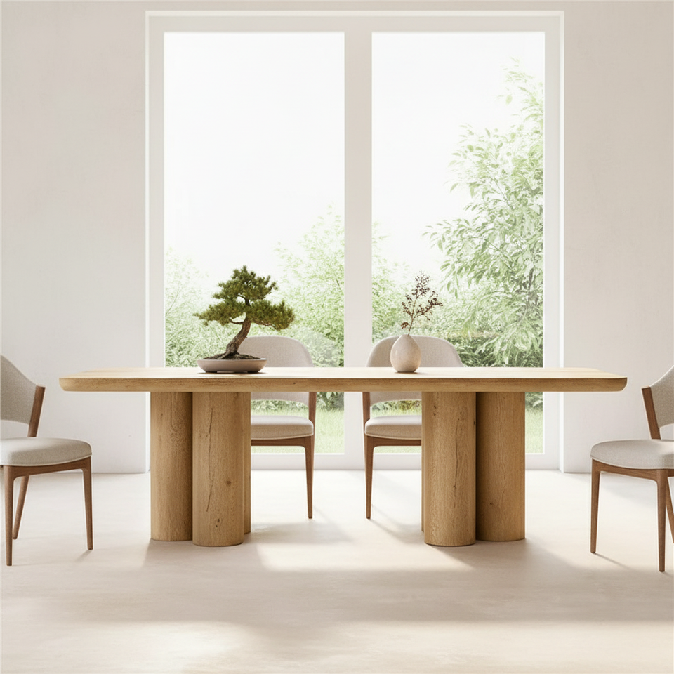 RH OSLO Mesa de comedor rectangular moderna Base de pedestal cilíndrico Juego de comedor de madera maciza de roble 6 Sillas de mesa de restaurante de cocina para el hogar