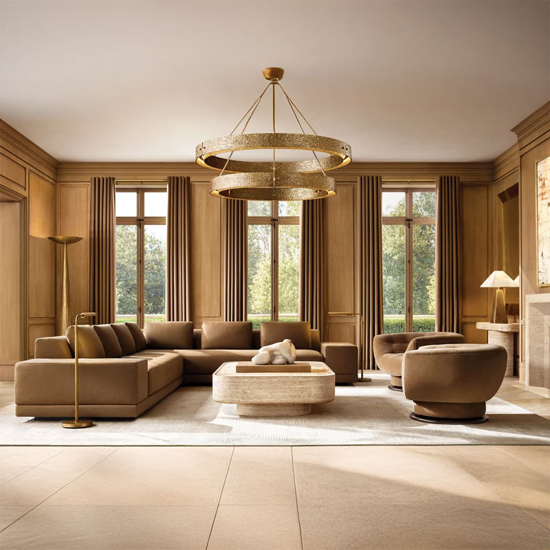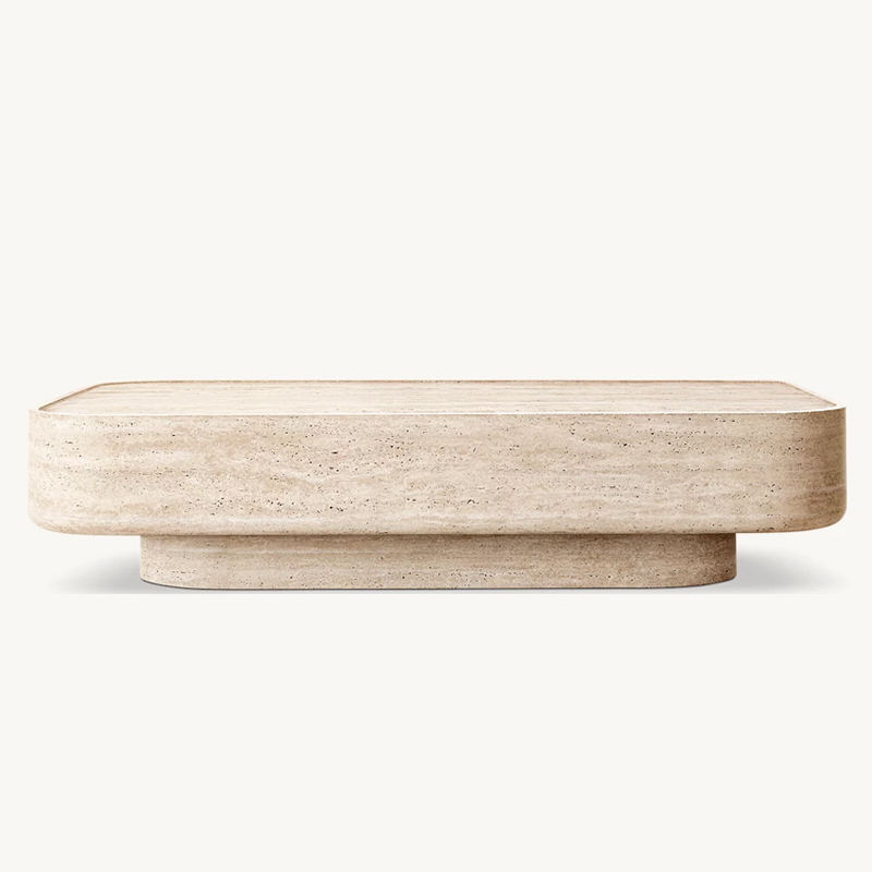 Mesa de centro de piedra moderna RH VITOLO con base esculpida superior de travertino tallado, duradera para sala de estar, hogar, oficina y hotel