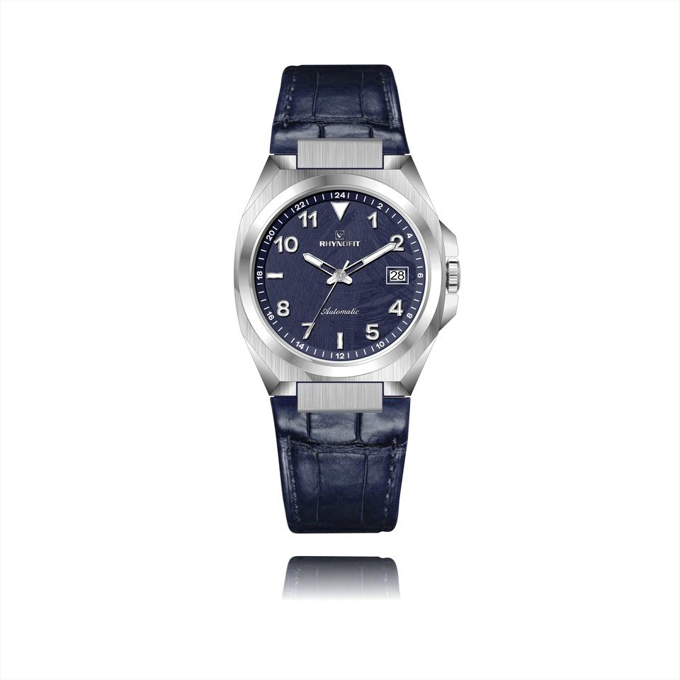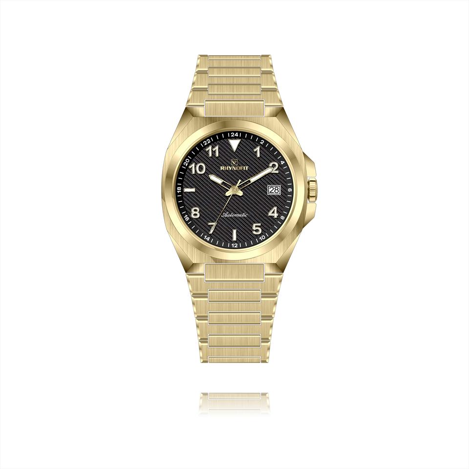 Reloj Automático Personal RHYNOFIT con Bisel Pulido de Ventana Única, Anillo de Capítulo, Fibra de Carbono, Pintura Blanca, Manecillas y Esfera