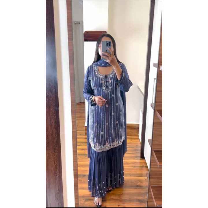 TOP DE TRABAJO BORDADO DE HILO DE SECUENCIA RICA CHINON SHARARA CON DUPATTA AZUL
