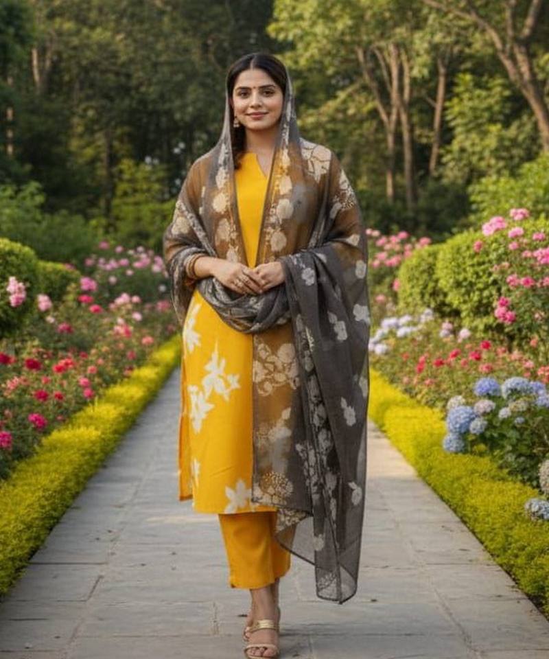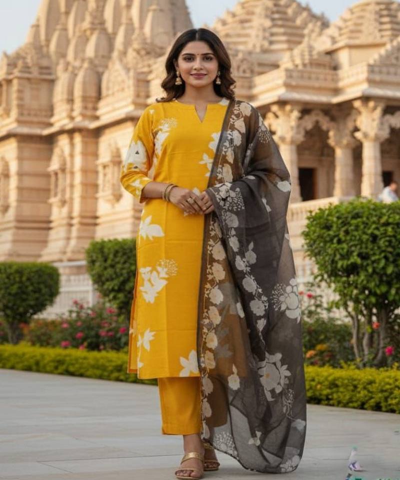 Conjunto de Top/Pantalón y Dupatta de Algodón Estampado RICH LOOK, Disponible, Secado Rápido, Lavable a Máquina, Multicolor, Ropa de Oficina, Precio al por Mayor