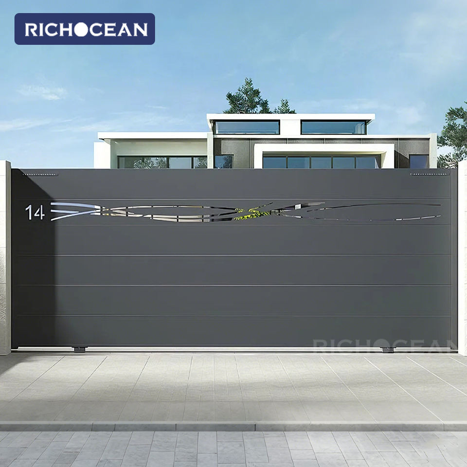 RICHOCEAN Venta de fábrica Drive Way Motorizado Retráctil Puertas DE SEGURIDAD corredizas Apartamento Aluminio Puertas principales eléctricas Puerta al aire libre