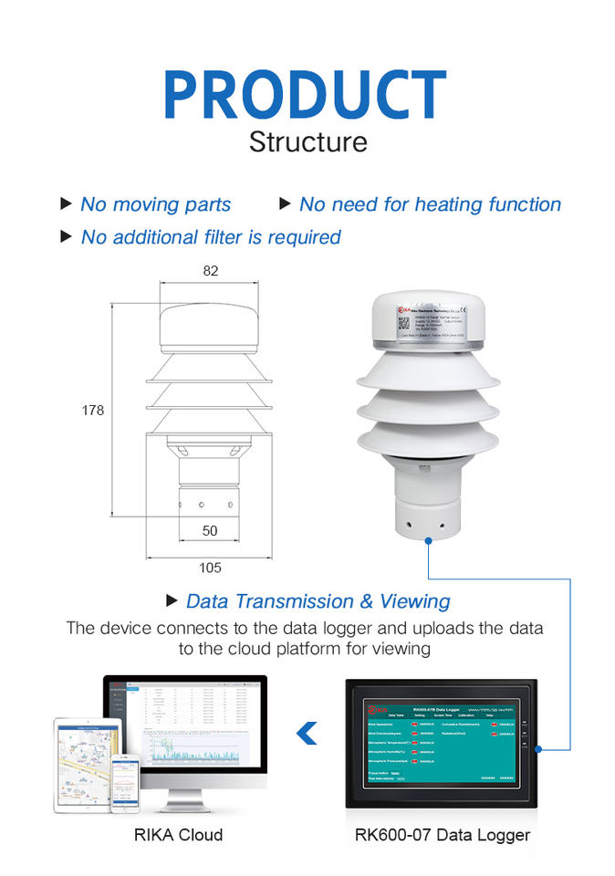 Medidor de Sensor de intensidad de lluvia RIKA RK400-13, Radar de Resolución de 0,01mm
