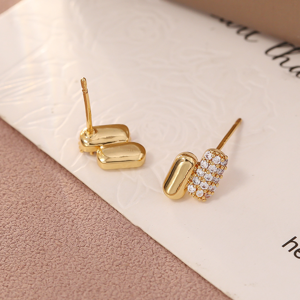 Pendientes RINHOO Mini Micro con Incrustaciones de Circonita, Chapados en Oro de 18K, con Forma de Línea Paralela, Joyería de Lujo para Mujer