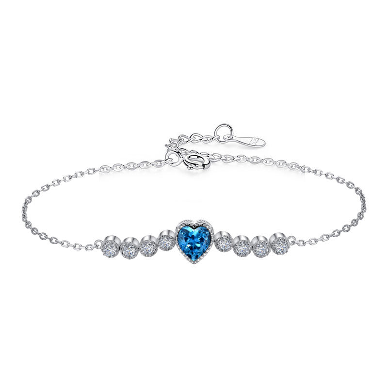 Name:Adjustable blue heart crystal chain link Bracelets Jewelry