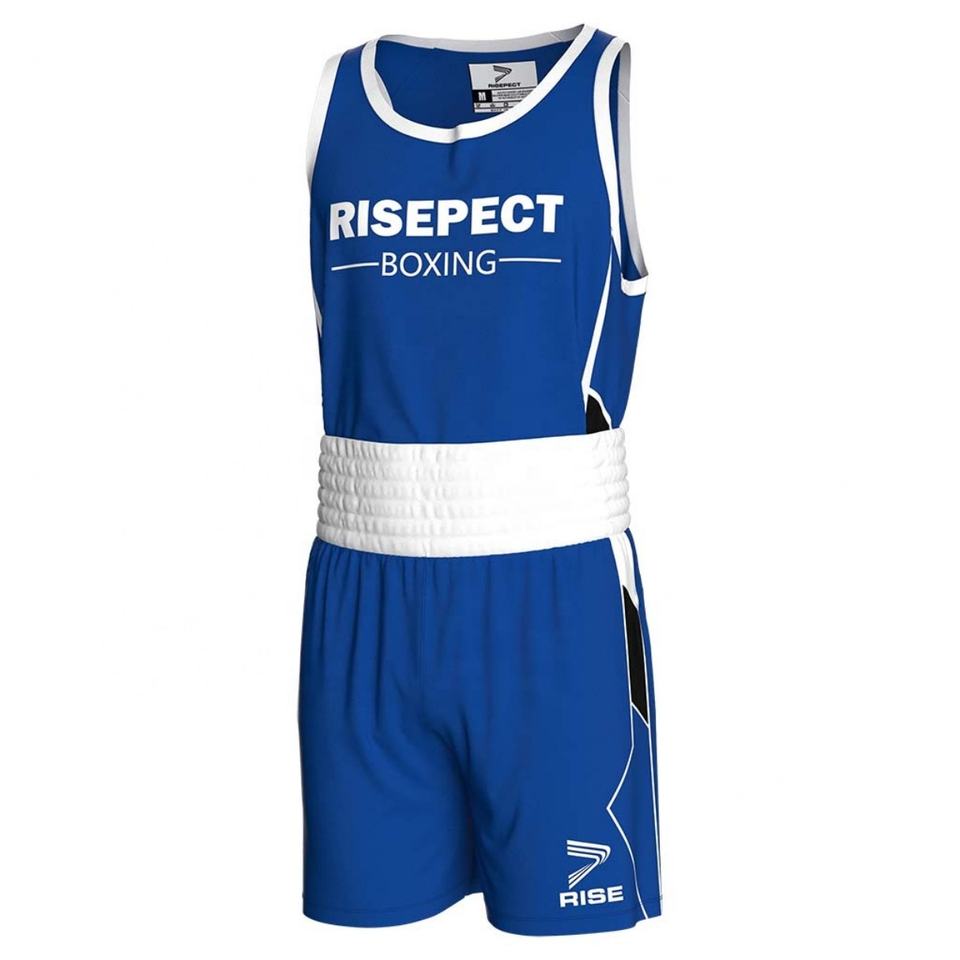 Conjunto Combinado de Competición de Boxeo RISE para Kickboxing y Muay Thai, Pantalones Cortos, Ropa de Competición de Boxeo, Rojo/Azul, Construcción Duradera