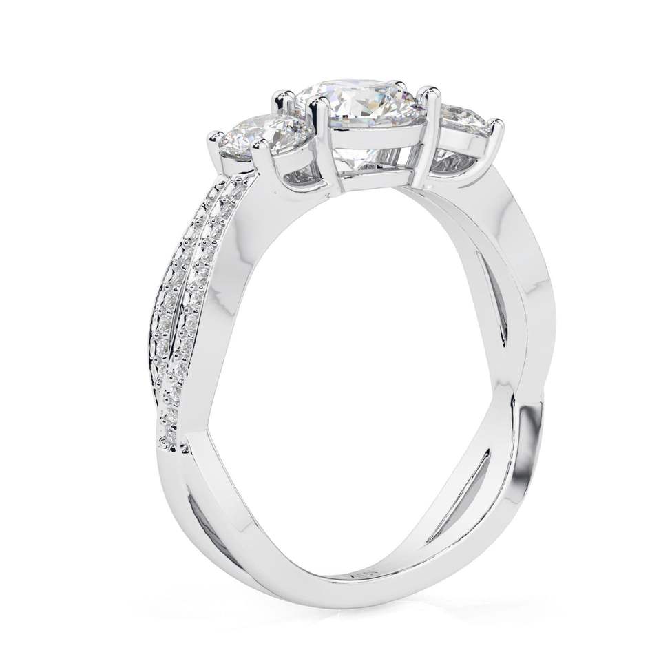 Anillo de Compromiso RITZIN con Tres Diamantes Cultivados en Laboratorio, Anillo de Boda de Oro Rosa con Corte Redondo y Diseño Trenzado para Mujer