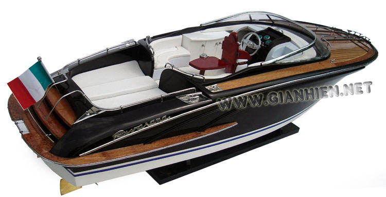 RIVA RAMA-barco de madera pintado en color morado oscuro, maqueta artesanal de alta calidad