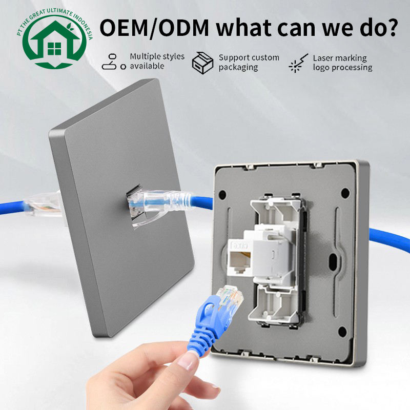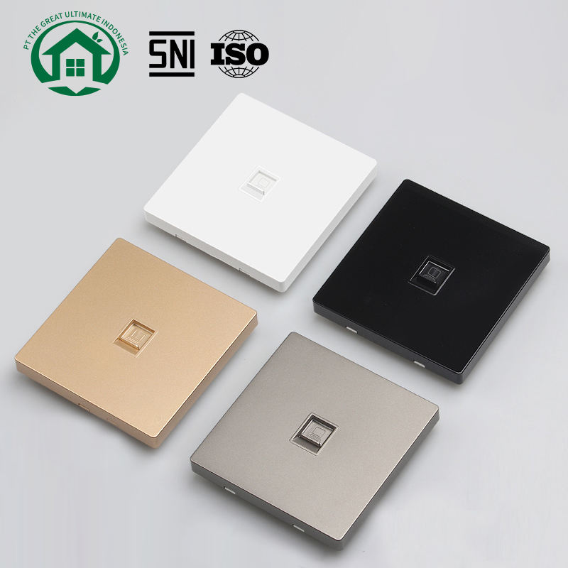 Conector de cable Ethernet RJ47 con construcción duradera de latón y placa de hierro dorada, diseñado para un solo enchufe de pared.