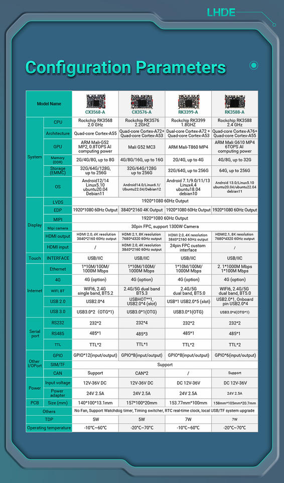 CPU:4 Cortex-A72+4 Cortex-A53 64-bit CPU, Highest frequency 2.2GHz
