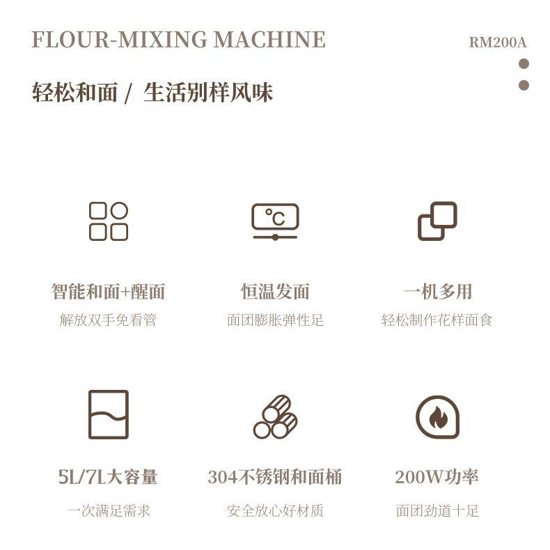 Amasadora de Harina RM200A 5L/7L, Mezcladora Inteligente de Acero Inoxidable, Amasadora Automática para Panadería