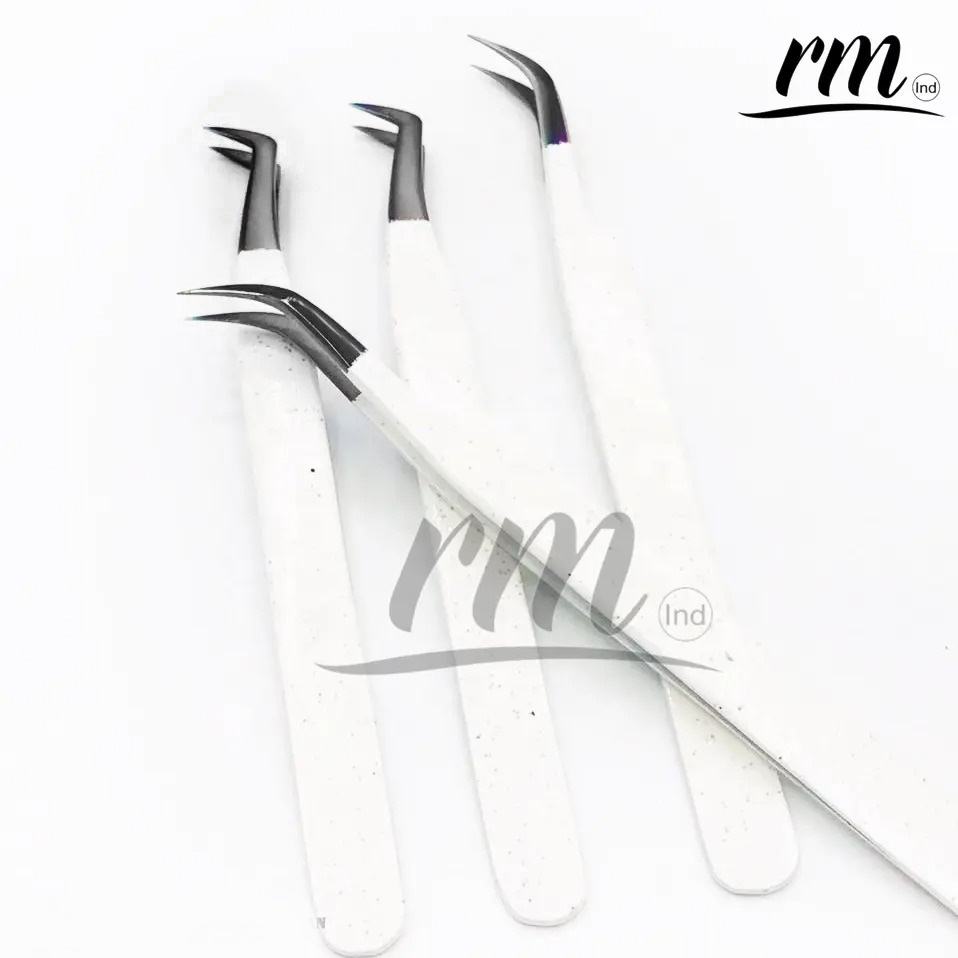 Pinzas RMI personalizadas para pestañas, pinzas recubiertas de polvo blanco con puntos de Color de Plasma negro, agarre fuerte, todo tipo de pinzas
