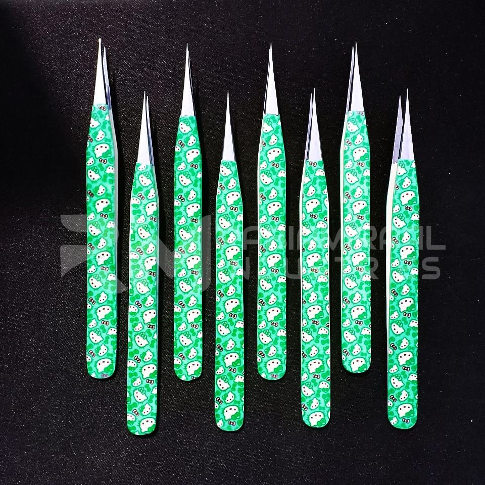 Juego de pinzas para extensión de pestañas Hello Kitty personalizadas RMI, diseño de papel, pinzas para punta de fibra de revestimiento, pinzas para extensión de pestañas
