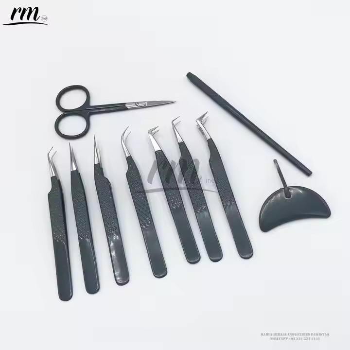 RMI Color gris oscuro con punta plateada Excelente agarre de diamante Pinzas profesionales para extensión de pestañas Logotipo personalizado y embalaje