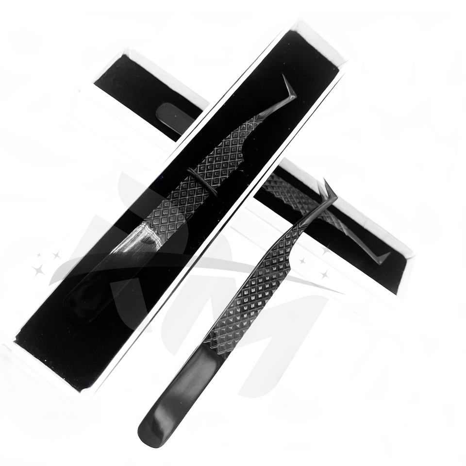 Caja de cartón blanca RMI, embalaje de piezas individuales con pinzas de extensión de pestañas de acero inoxidable de Color Plasma negro