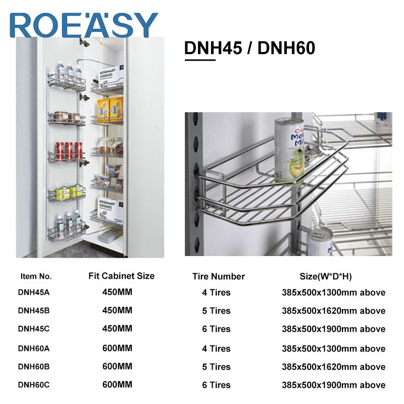 ROEASY, diseño moderno, armario de almacenamiento de cocina alto, organizador, cestas de alambre extraíbles, Unidad de despensa alta de cierre suave
