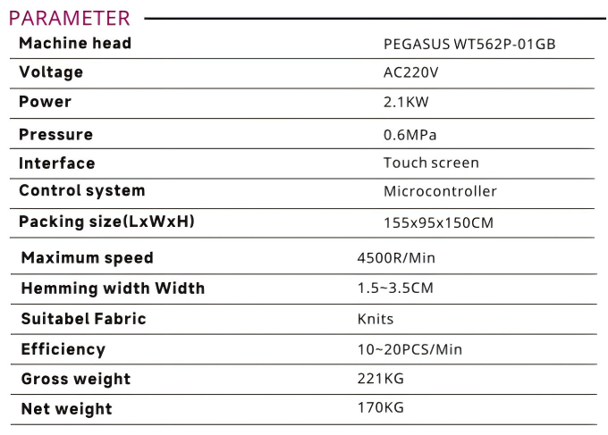 Ancho del dobladillo:1,5 ~ 3,5 CM