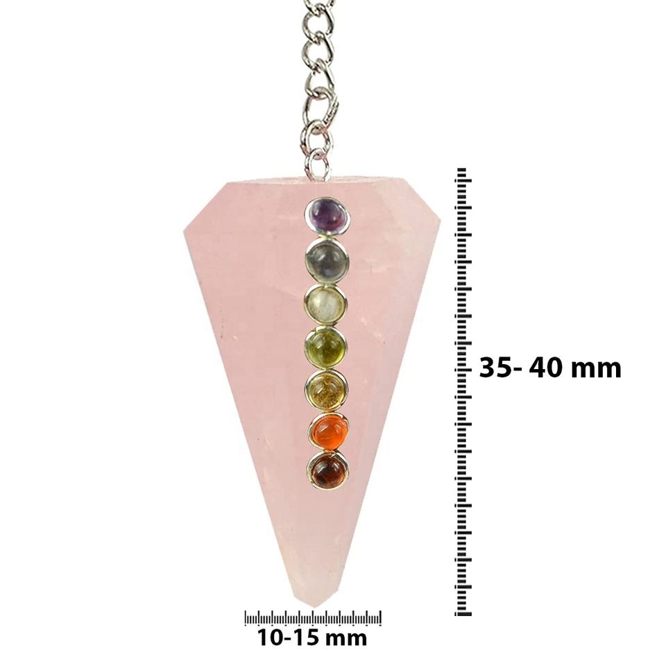 Péndulo de cono de Chakra de cuarzo rosa, colgante espiritual de piedras preciosas naturales para radiestesia y joyería curativa