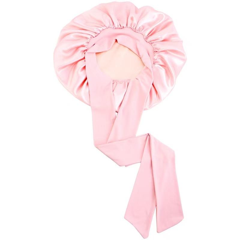 Gorro de Dormir de Satén de Doble Capa Color Sólido ROSE para Mujer, con Lazo Ajustable, de Seda Sintética, de Alta Elasticidad, para el Cuidado del Cabello