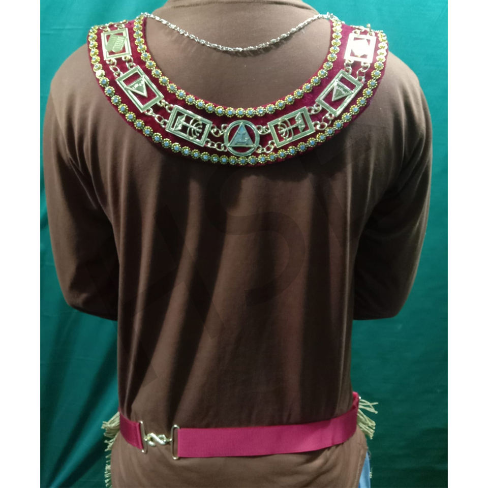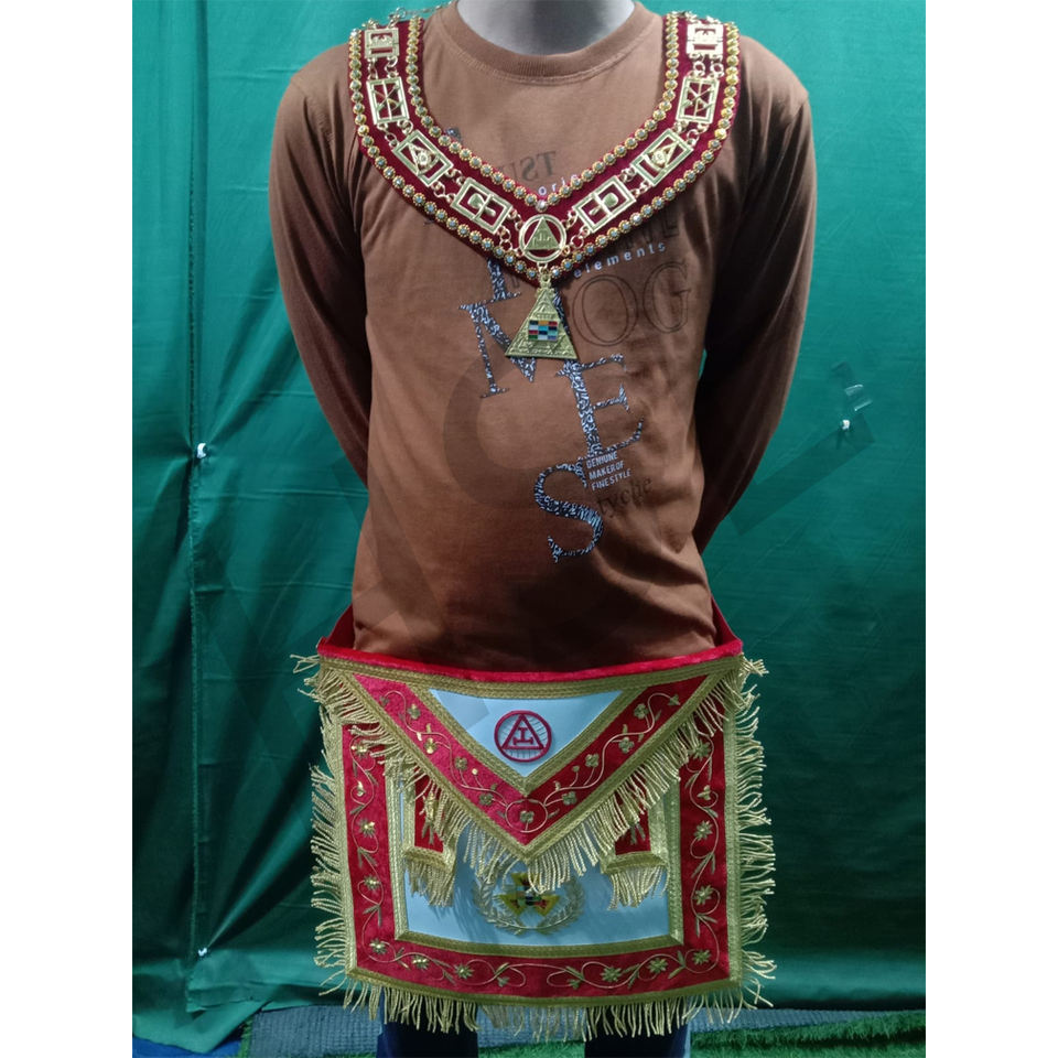 Delantal de Sacerdote Alto de la Orden Real Arquitectónica con Collar y Joyas Rojo-HSE