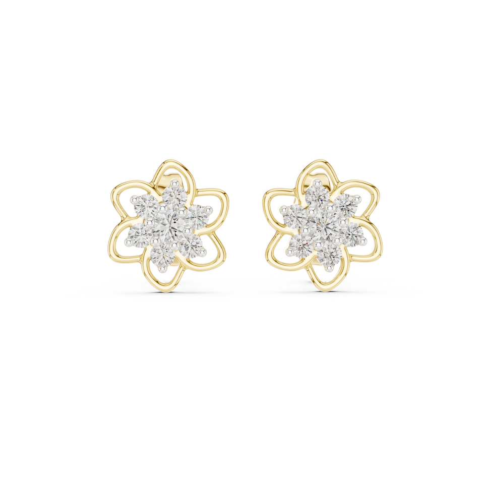 Juego de pendientes de diamantes cultivados en laboratorio ROYAL BLOOM en oro amarillo de 18 quilates para compromiso, boda, fiesta, regalo de San Valentín, uso diario para mujeres