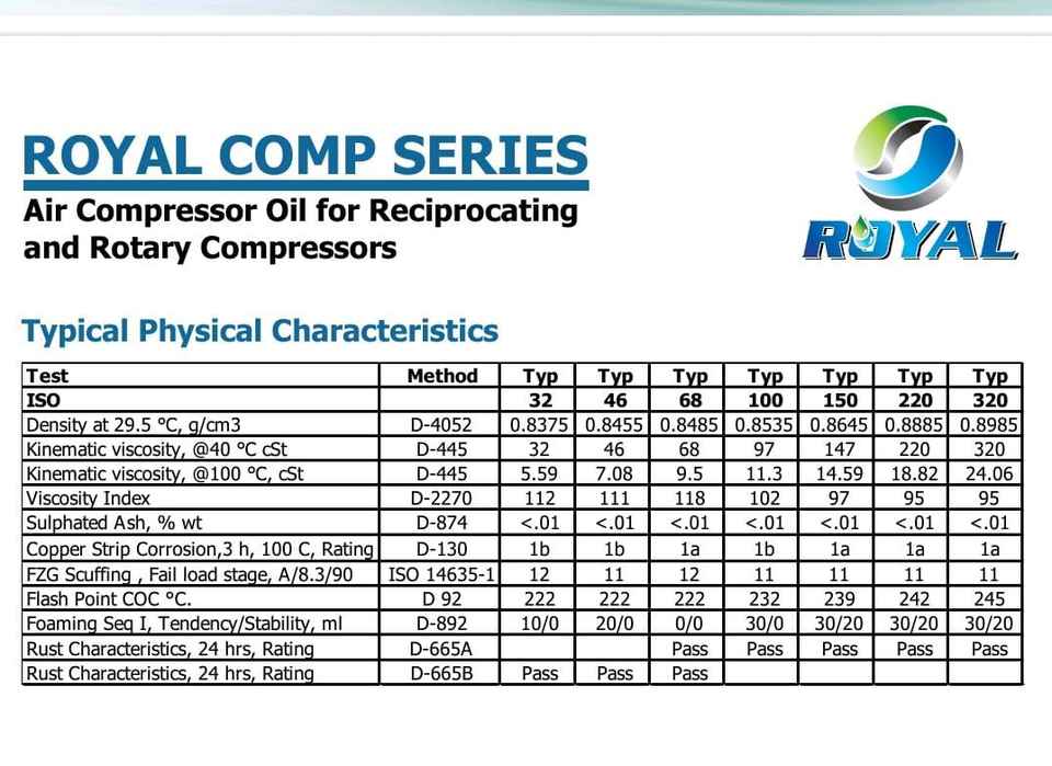 Aceite lubricante Premium ROYAL COMP ISO 68 para compresores de aire alternativos y rotativos Hecho en India