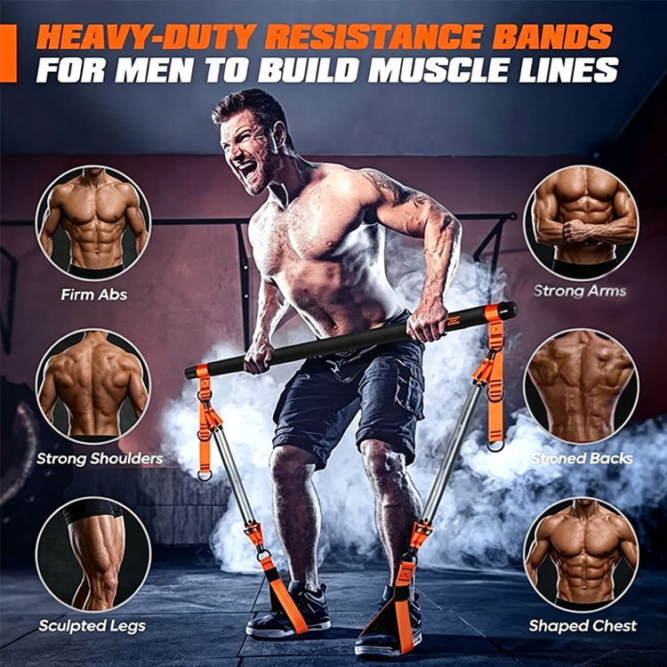 Heavy Duty Pilates Bar Set with 6 Resistance BandsProduct name