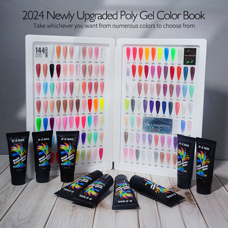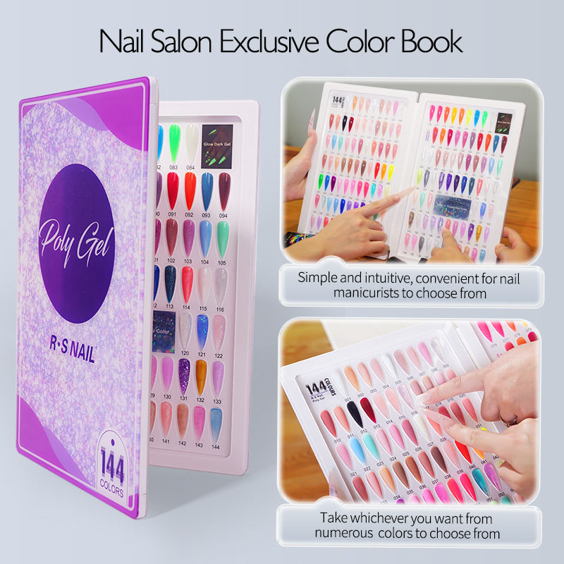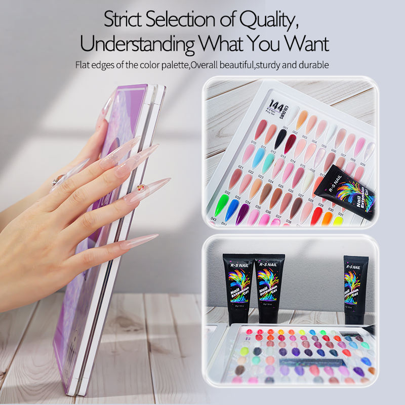 RS Nail Factory Direct 144 Colors Builder Nail Gel Polish Disco Extension Painting Gel Nail Colors Card para uso artístico