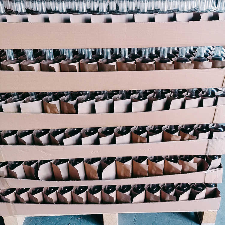 1. Pallet, with cardboard divider to protect each glass bottle