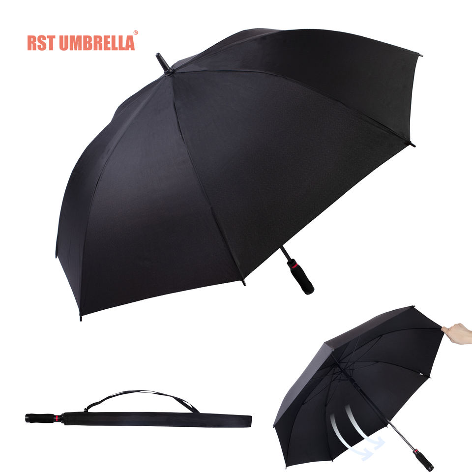 RST Paraguas de golf negro a prueba de tormentas de 30 pulgadas de tamaño grande de alta calidad con impresión de logotipo