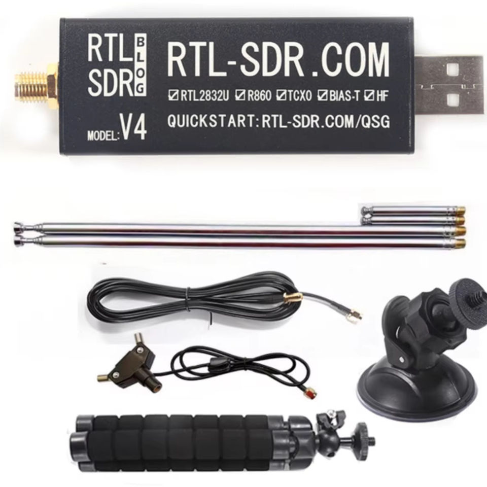 El conjunto completo de RTL SDR v4 con antenas.
