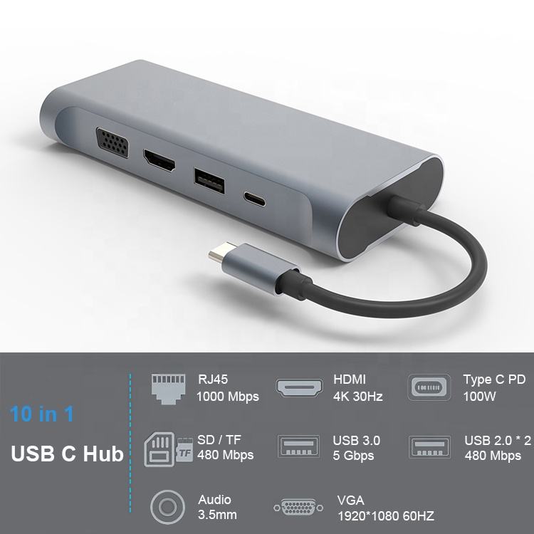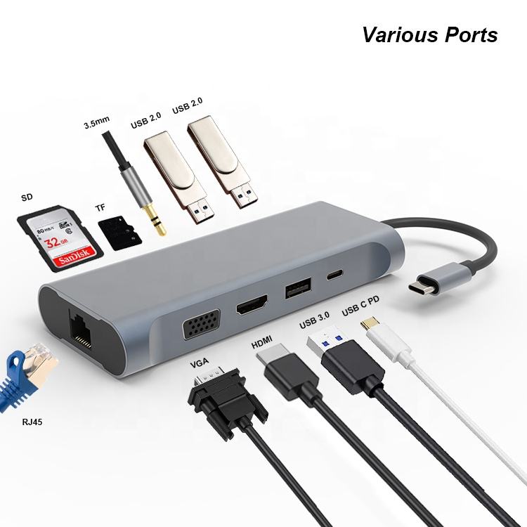 USB 3.0 + USB 2.0 + HDMI + PD + RJ45 + VGA + SD + TF + 3,5 mmTipo de interfaz