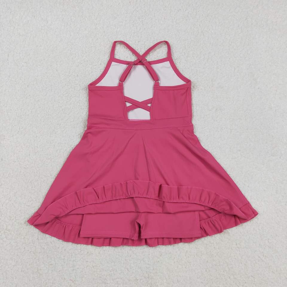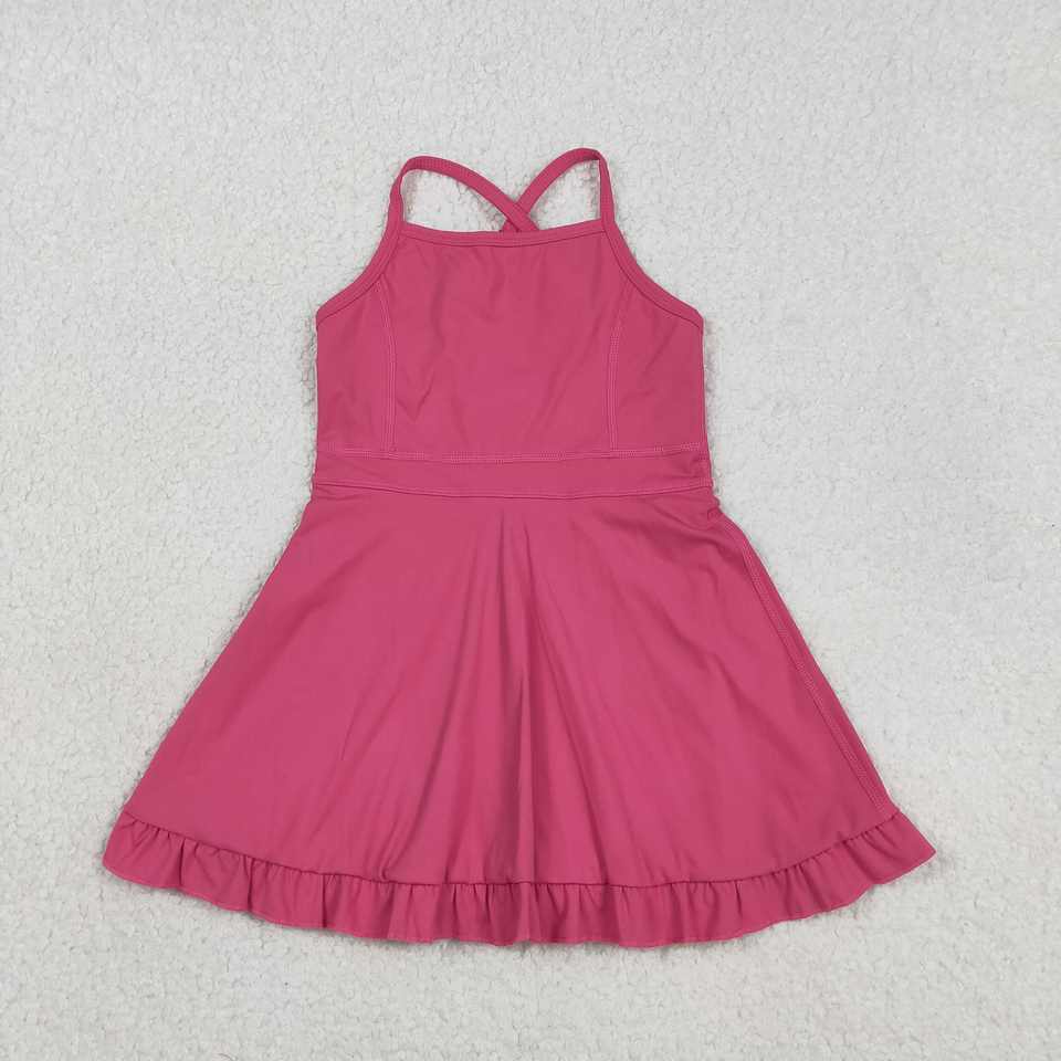Vestido Deportivo para Niñas Pequeñas RTS ODM, Estampado de Color Sólido Informal, Transpirable, para Jugar Tenis, Yoga, con Shorts Forrados y Corte en A
