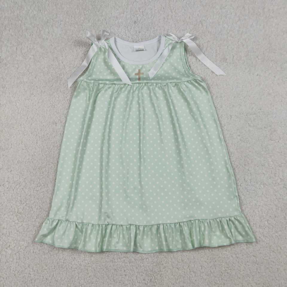 Vestido RTS Boutique de Pascua con Estampado Floral para Niñas Pequeñas, Estilo Informal, Sin Mangas, Mezcla de Algodón, ODM