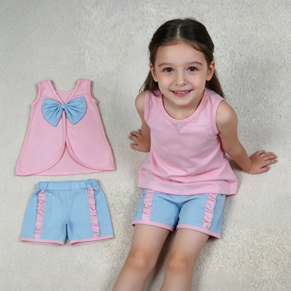 Conjuntos de Ropa para Niñas Pequeñas RTS Boutique, Lazos de Algodón de Color Sólido, Shorts, Lazos Bonitos, Nuevos Diseños de Verano, Conjuntos de Ropa para Hermanas