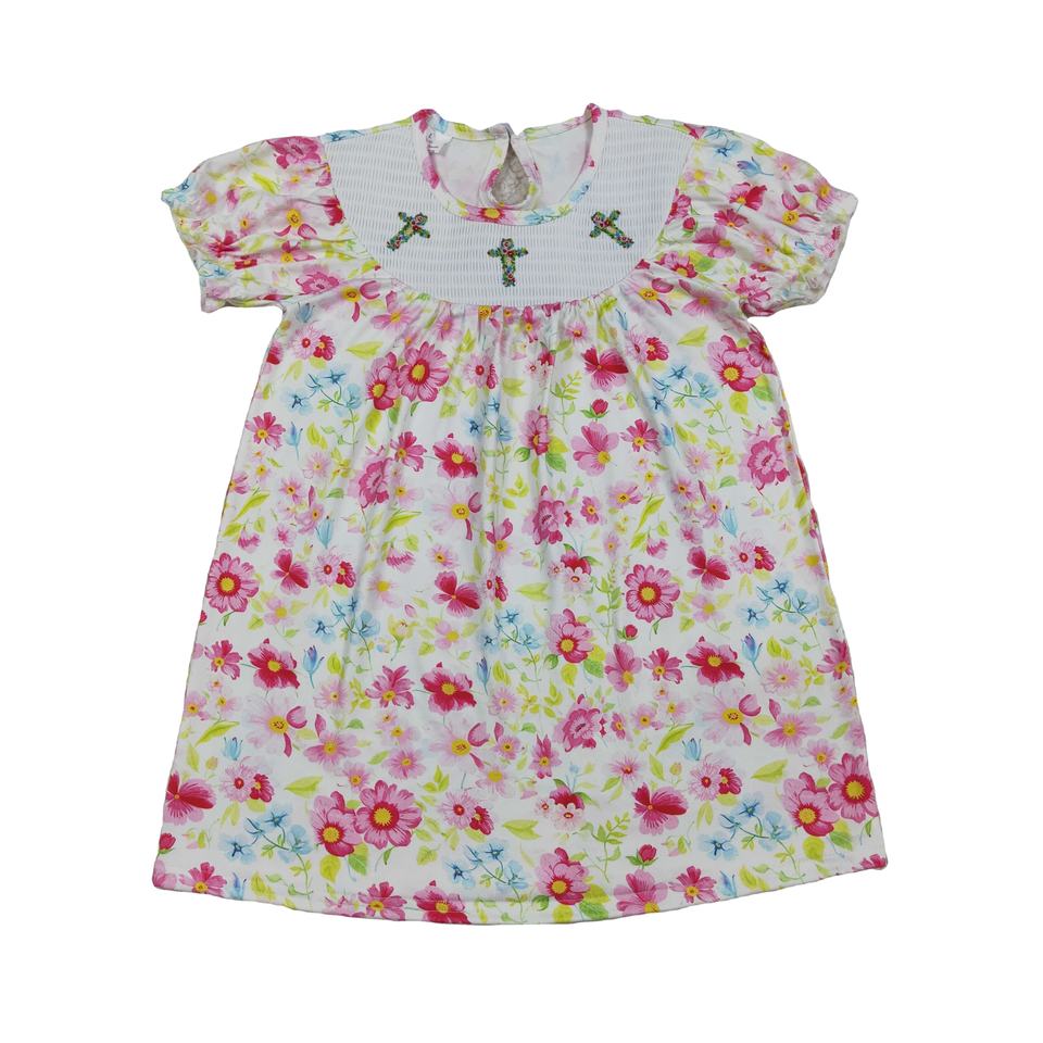 RTS He is Risen Vestido de Verano para Niñas, Estampado Floral, Casual, con Volantes, Bonito, de Algodón, Estilo A-Line, Venta al por Mayor