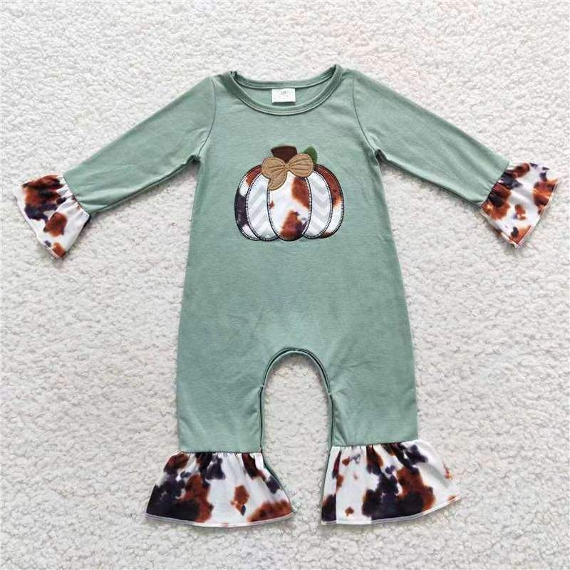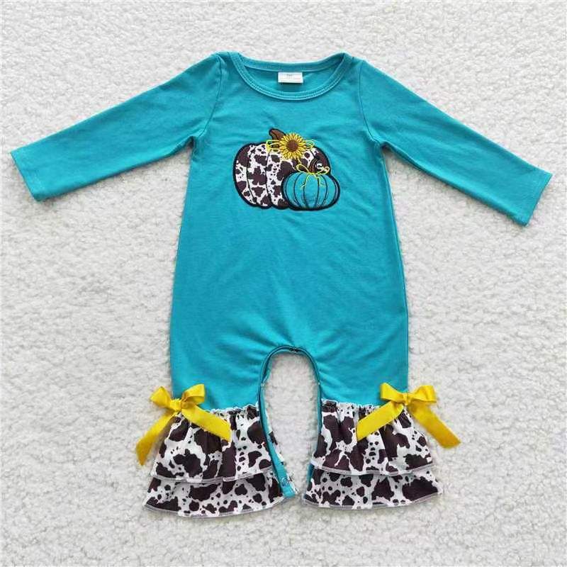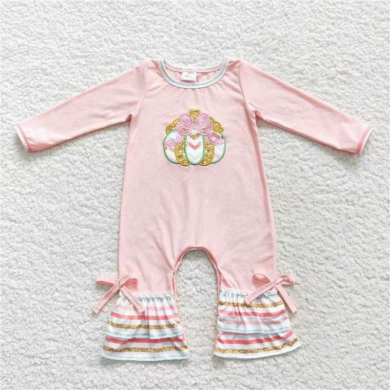 Mono RTS con bordado de calabaza de oro rosa para niña, mono de manga larga al por mayor para niño, regalo de Acción de Gracias para niña