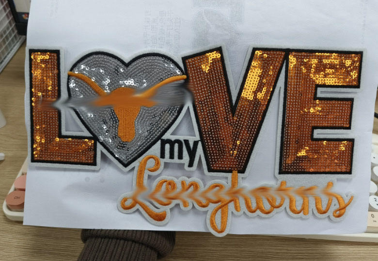 Decoración con lentejuelas: Las lentejuelas añaden un aspecto brillante y llamativo al parche, mejorando la apariencia visual de cualquier artículo al que se aplique.