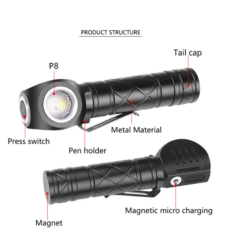 Linterna multifuncional de succión magnética RTS P8, foco fijo de carga conveniente con Clip de bolígrafo, Lámpara de trabajo con imán trasero