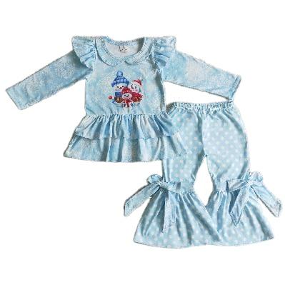 RTS NO MOQ Little Girl Boutique Azul muñeco de nieve Polka estampado otoño trajes niños al por mayor niño niña ropa