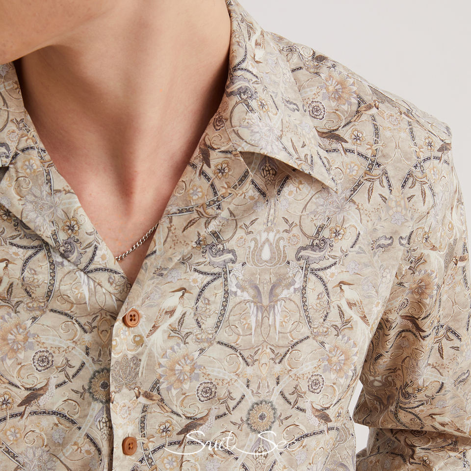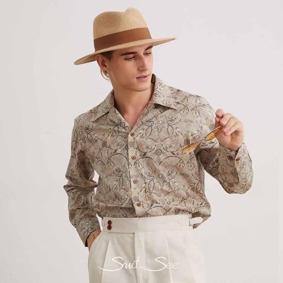 Camisa con estampado floral de algodón RTS/OEM 100% para hombre, camisa informal con estampado vintage y cuello cubano, camisa de estilo italiano para hombre