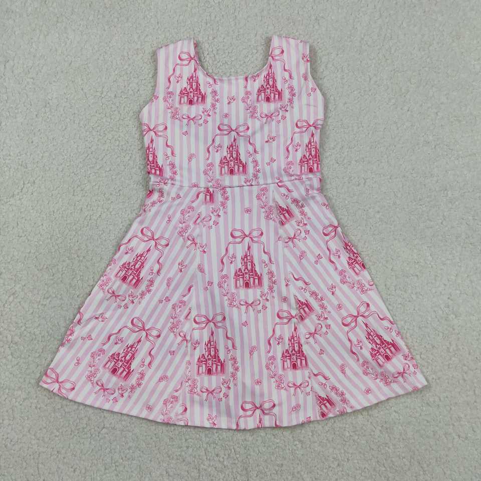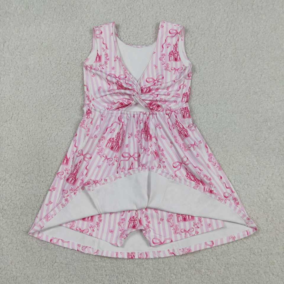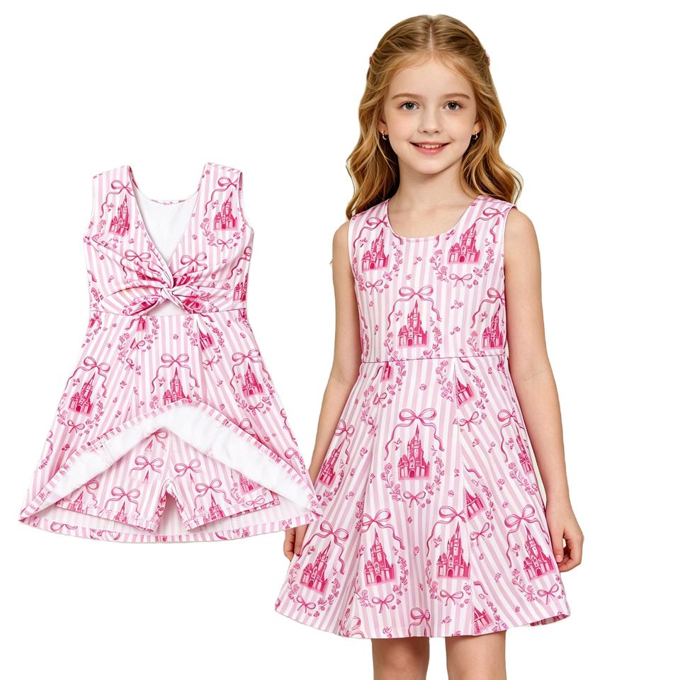 RTS Vestido Deportivo para Niñas Pequeñas con Estampado de Lazos de Castillo de Princesa, Pantalones Cortos Deportivos para Tenis y Yoga, Ropa Deportiva al por Mayor