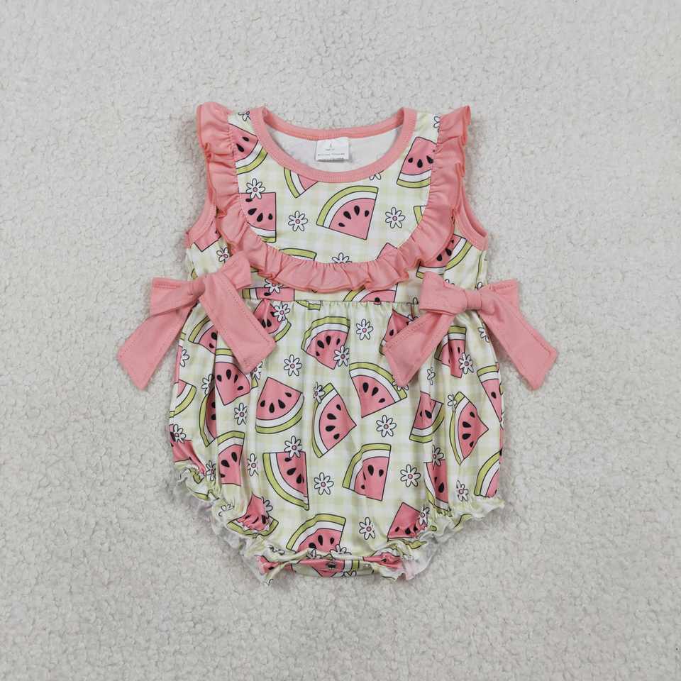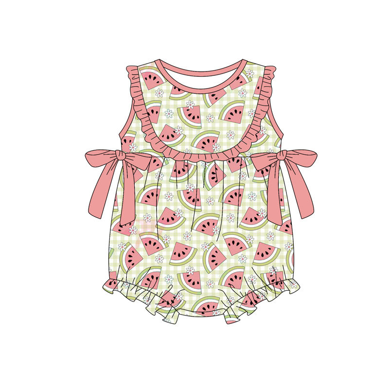 Mono de Verano para Bebés Niñas, Color Rosa Sandía, 95% Algodón, 5% Elastano, 200-220gsm, Venta al Por Mayor de Ropa Infantil