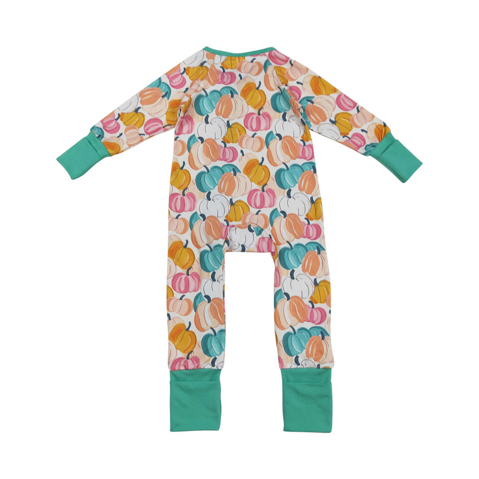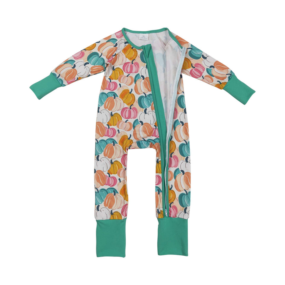 RTS Venta al por mayor Ropa para niños Manga larga Otoño Calabazas Cremallera Mameluco para bebé Primavera Otoño Ropa de diseño