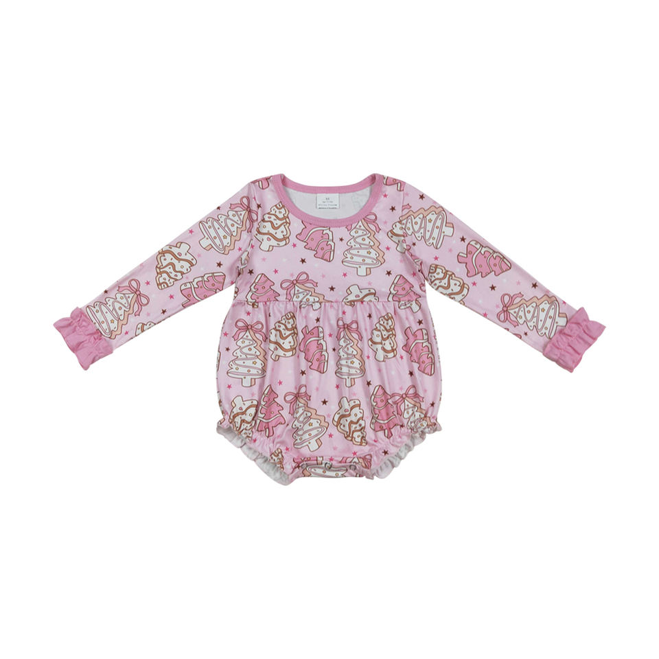 RTS venta al por mayor de manga larga de Navidad Santa Cake Fall Romper para Niñas Ropa de diseño de primavera y otoño