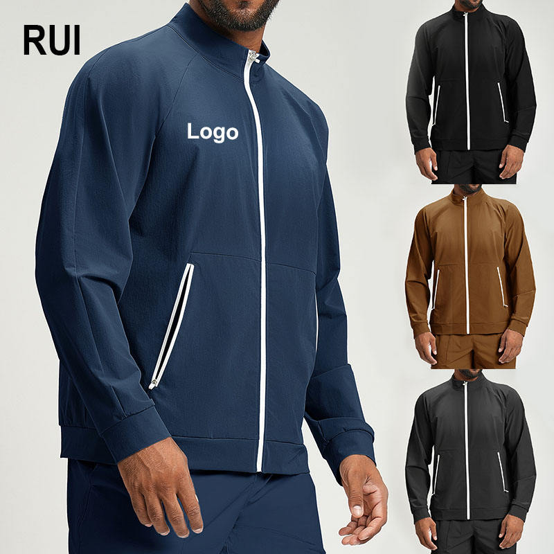 Chaqueta Deportiva Informal con Cierre y Cuello Alto, Ligera, de Talla Grande, para Hombre, con Logotipo Personalizado RUIQUWIN, que Absorbe la Humedad, para Correr